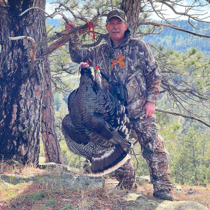 Our ranch is situated near Devils Tower National Monument on the edge of the Black Hills in Northeastern Wyoming at about 4,300 ft altitude. Timbered canyons, open meadows, and wide creek bottoms are the ideal turkey habitat. We have hundreds of pure Merriams, and our success rate is close to 100%.